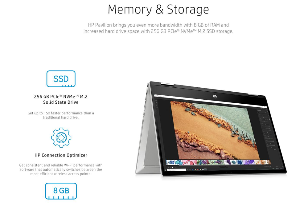 • MEMORY & STORAGE - HP Envy brings you even more bandwidth with 8 GB of RAM and increased hard drive space with 256 GB PCIe NVMe M.2 SSD storage (3)