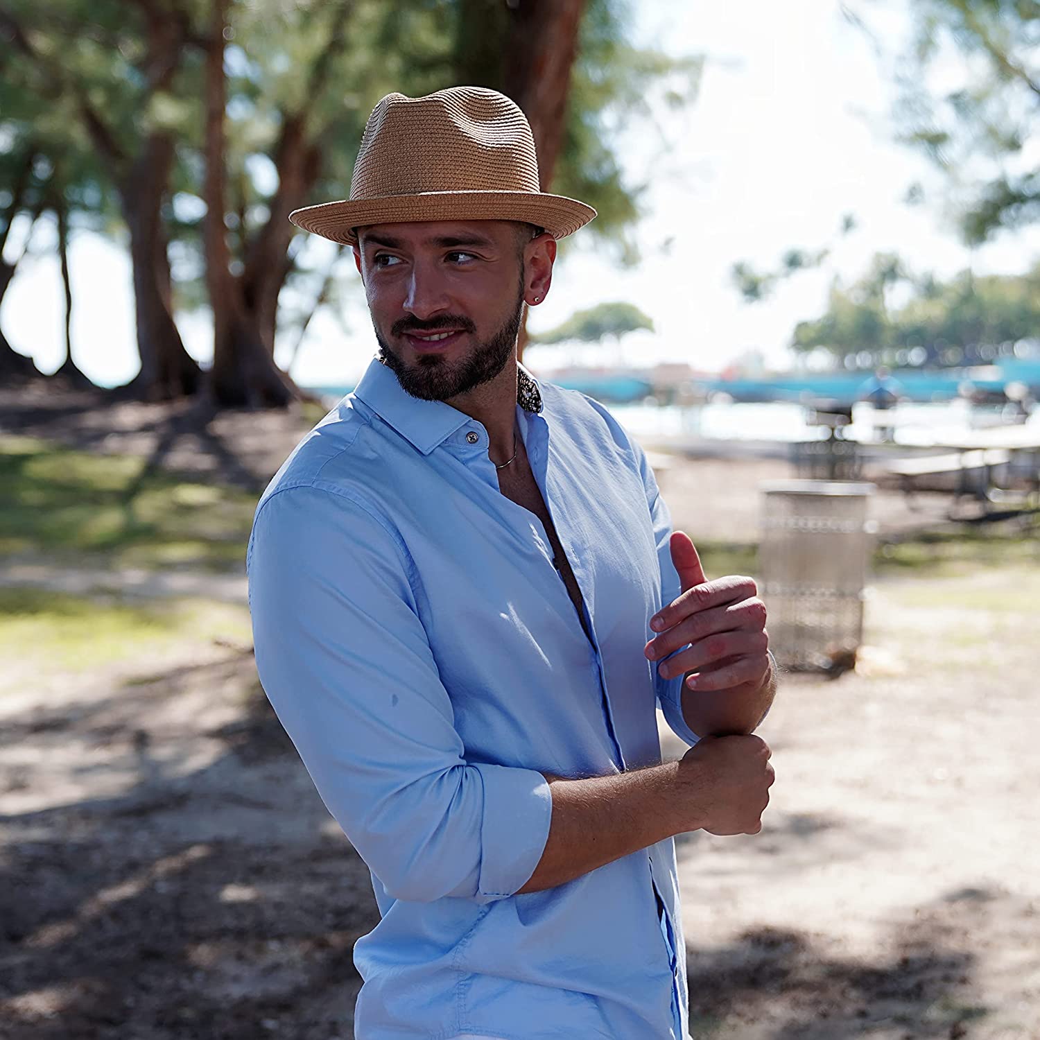 Upgrade your summer style with Lanzom's Straw Fedora Hat - the perfect Summer Beach Sun Hat for Men and Women who love outdoor travel, holiday, or beach playing.