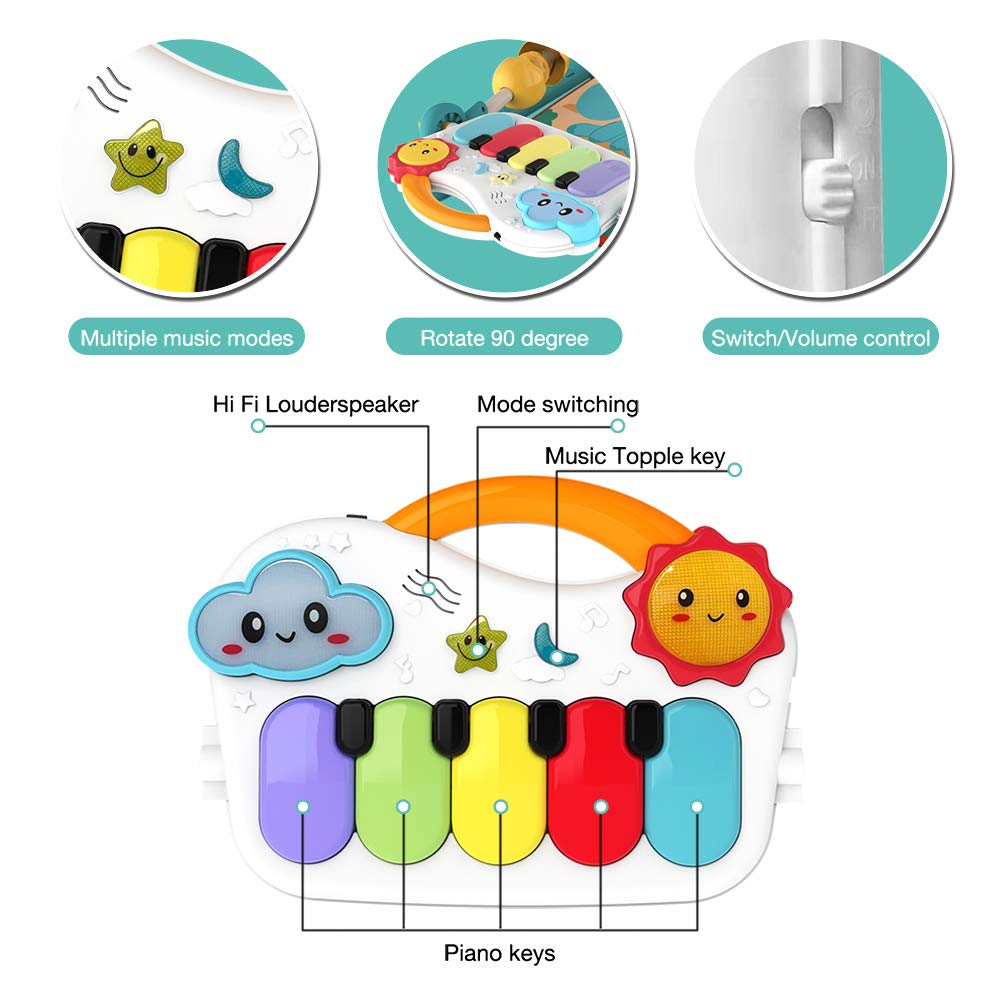 Protect Baby's Eyesight - The built-in LED soft and delicate lighting of the piano gym protects the baby’s eyesight and promotes visual discrimination and development. Flashing interesting lights also makes playing more interesting and attractive,