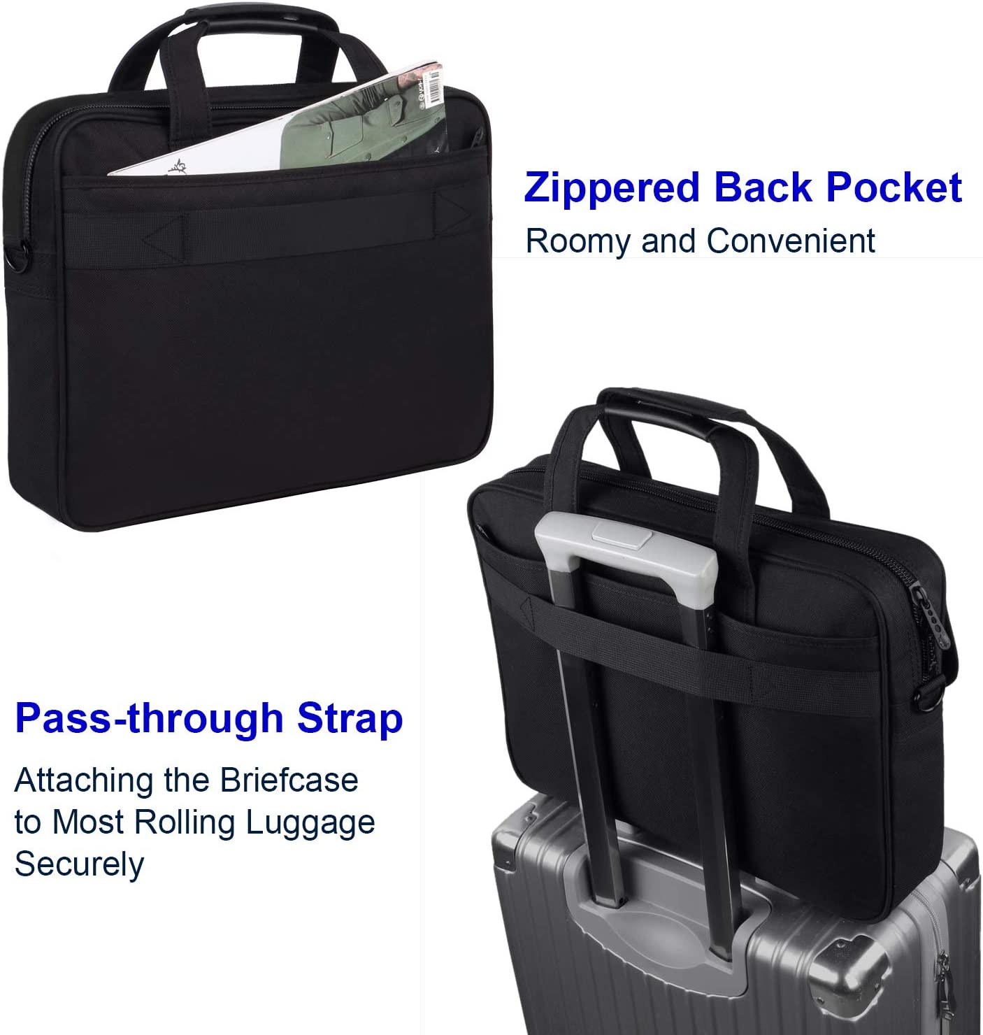 • Easy Carrying: Men's laptop messenger bag comes with a flat pass-through strap along the back, which allows the men briefcase bag to securely slip over the handle of any rolling luggage for hands-free transport