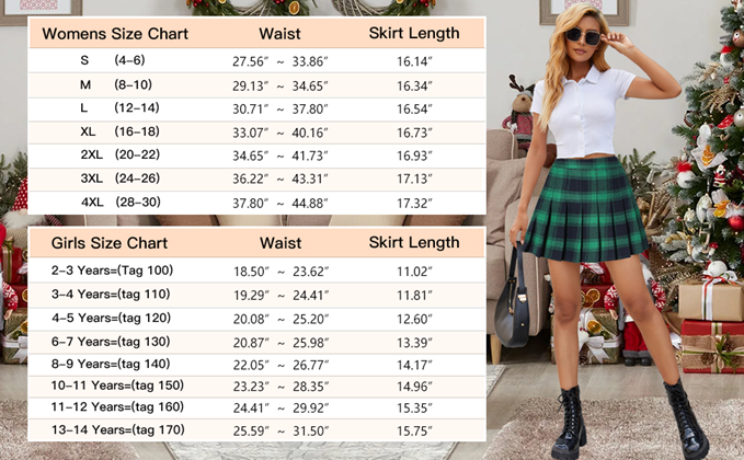 SANGTREE Girls Women's Pleated Skirt, Elastic Waist Uniform Skirt, 2 Years - US 4XL