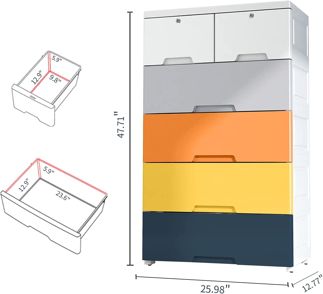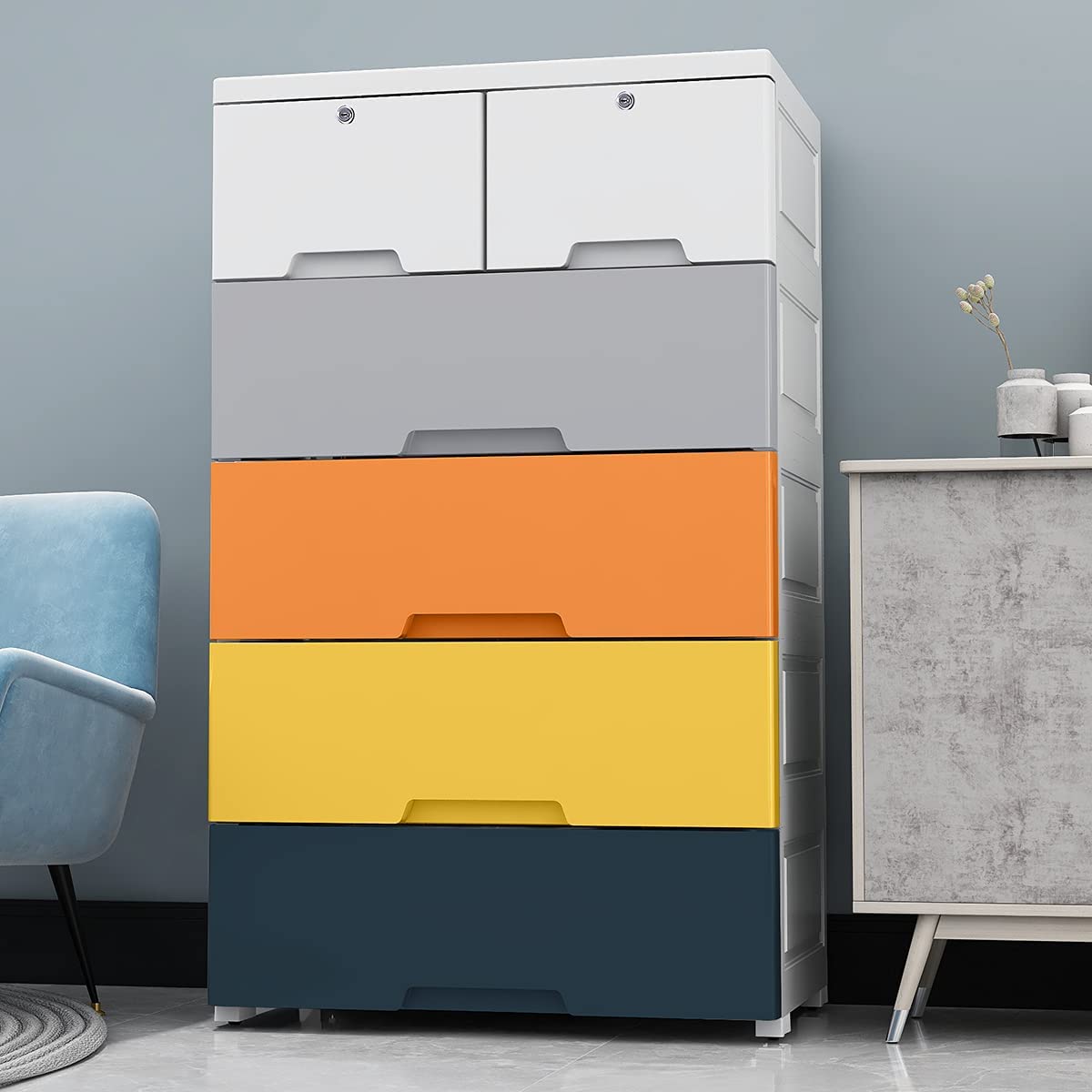 • 【6 DRAWERS ORGANIZER】Features 4 large drawers and top 2 small cabinets locker,6 drawers for large storage space.Storage cabinet on wheels made it easily to move anywhere you want
