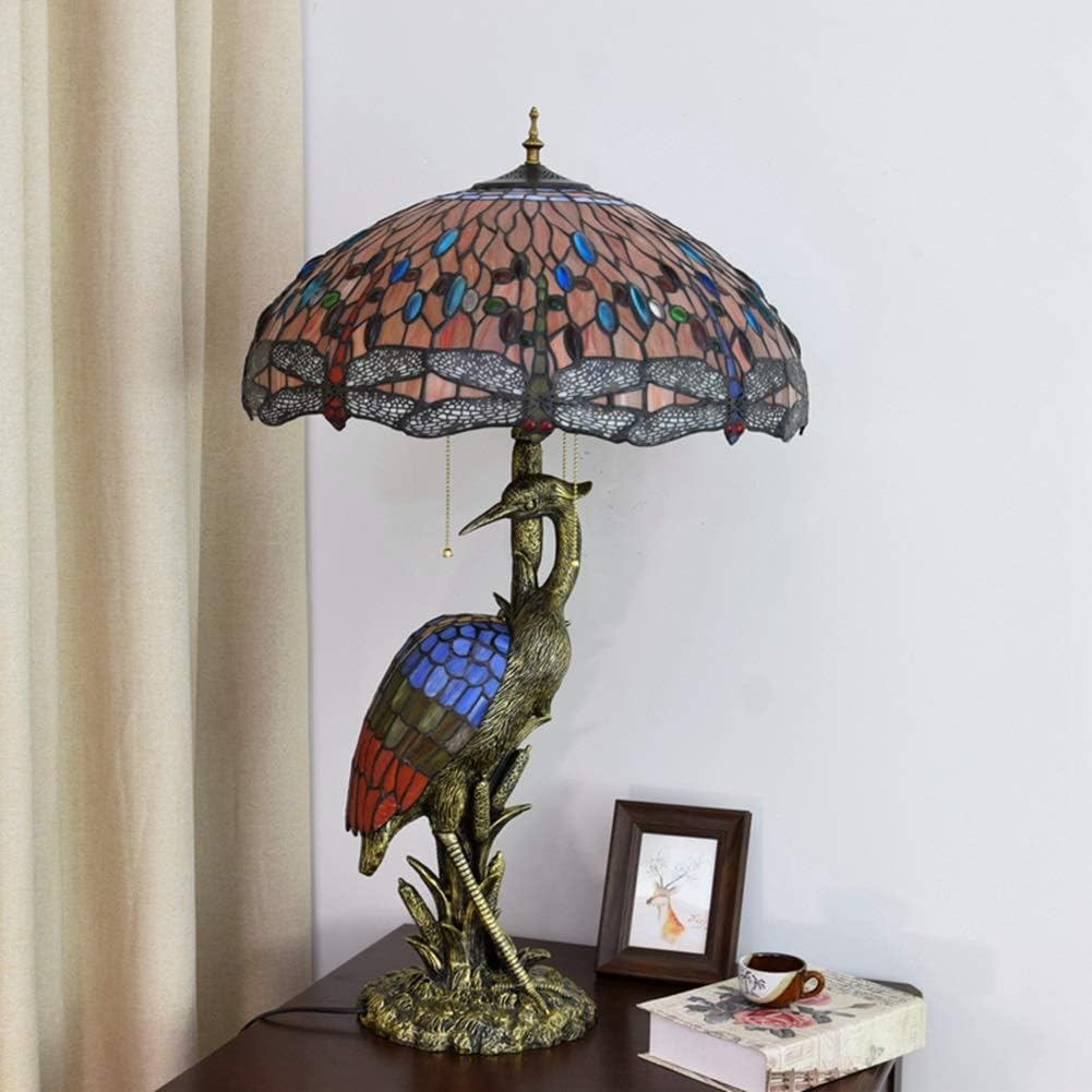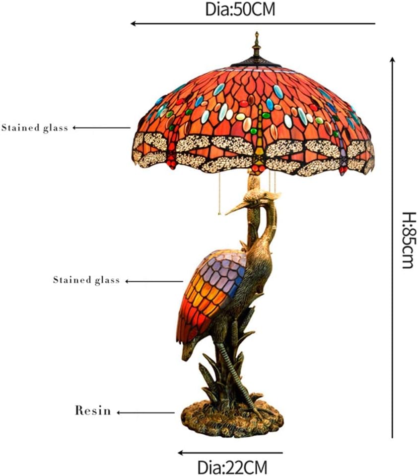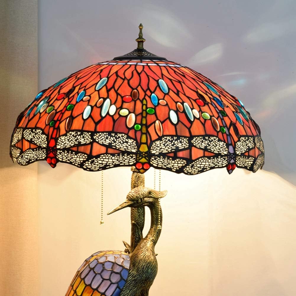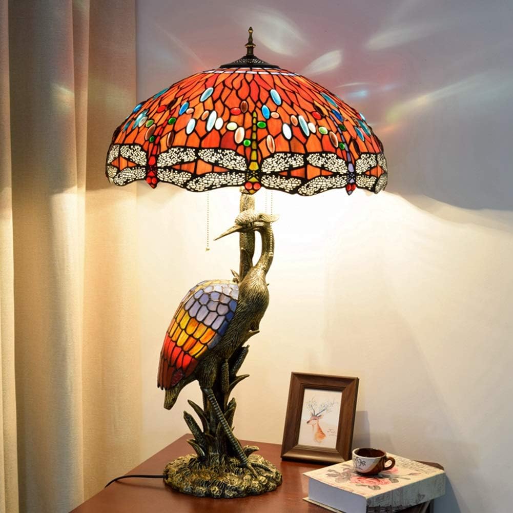 Handmade Stained Glass Table Lamp 18" Tiffany Style Large Table Lamp Dark Red Crimson Dragonfly Desk Lamp Creative Antique Light Base for Living Room Study Bedroom Table Lamp (Color : Male)