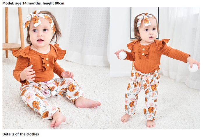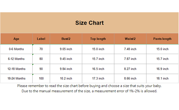 Size:0-6 months, 6-12 months, 12-18 months, 18-24 months.Newborn girl clothes,make your little one get lots of compliments with this clothes set
