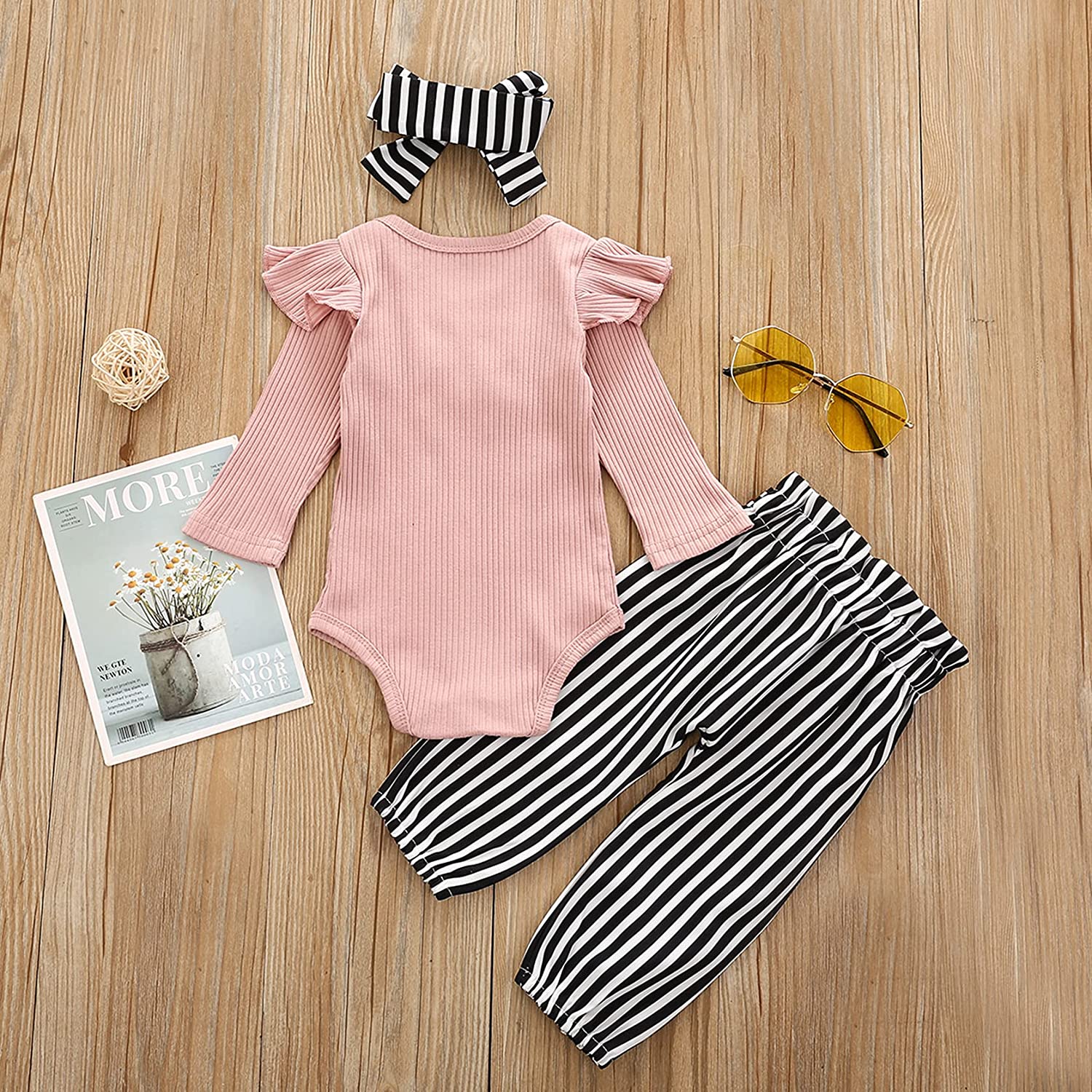 Newborn Baby Girls Outfits Flying Sleeve Romper+Cute Pants+Headband 3PC Infant Girl Clothes Set