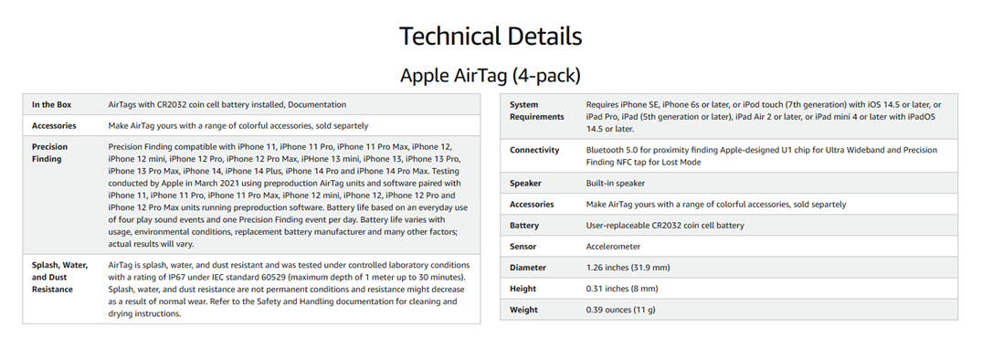 AirTag is IP67 water and dust resistant