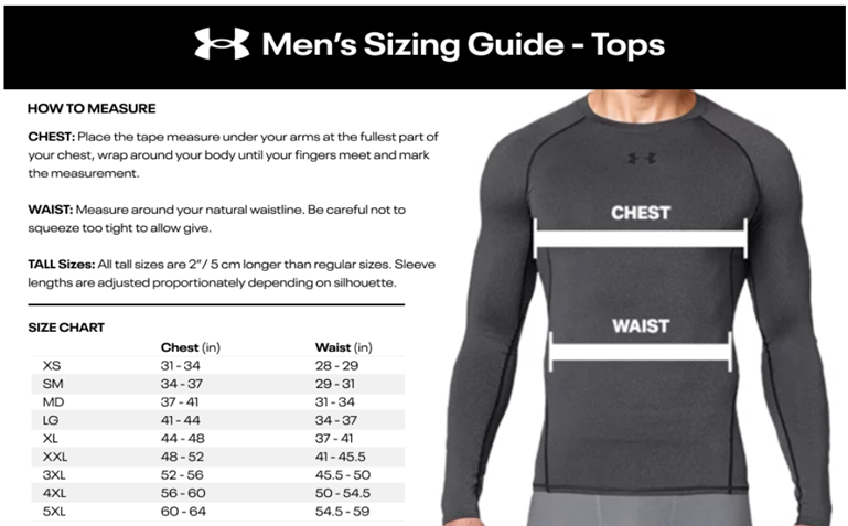 - TALL Sizes: All tall sizes are 2”/ 5 cm longer than regular sizes. Sleeve lengths are adjusted proportionately depending on silhouette.