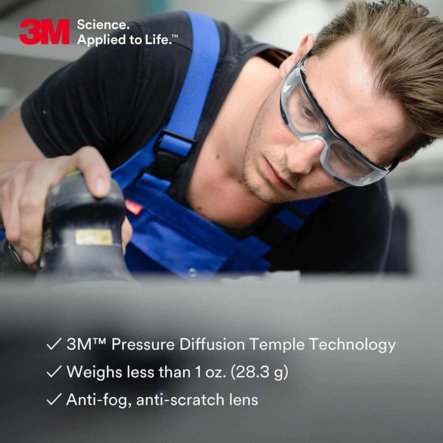 3M SecureFit Protective Eyewear is designed to diffuse pressure over the ears through 3M’s proprietary Pressure Diffusion Temple Technology. The glasses automatically adjust to the head and facial features of the wearer. Weighing less than 1 ounce, the durable, snug fitting, flexible nature of SecureFit offers a more comfortable and personal fit than old fashion “one size fits all” glasses. The snug fit also keeps the glasses securely in place as the wearer looks up and down or side to side, eliminating the need for frequent repositioning. The anti-fog coating on the lenses helps reduce the chances of fogging in hot and humid environments. Removable foam lined gasket helps keep debris out of your eyes while providing comfort and cushioning. Meets the High Impact Requirements of CSA Z94.3-2007 and the High Impact Requirements of ANSI Z87.1-2020.
