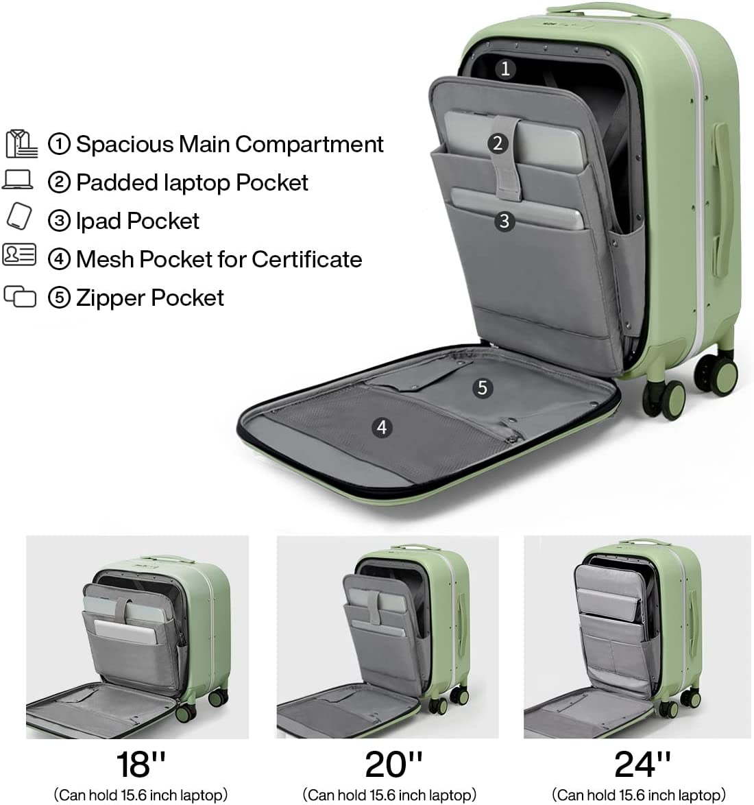 • 【INNOVATIVE DESIGN】Front Laptop Pocket helps quickly access your essentials like 15.6'' laptops, documents and more, assist you save time. Stylish and beautiful design, this hard luggage has won the Kapok Award.
