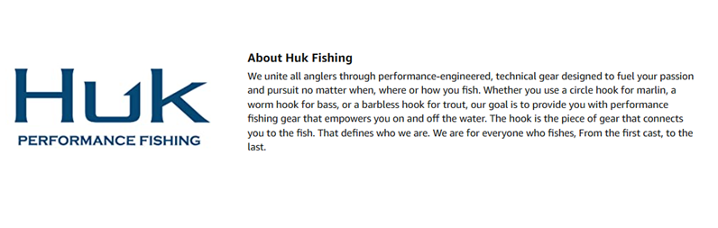 • Huk: Uniting anglers through performance-engineered, technical gear designed to fuel your passion and pursuit no matter when, where or how you fish