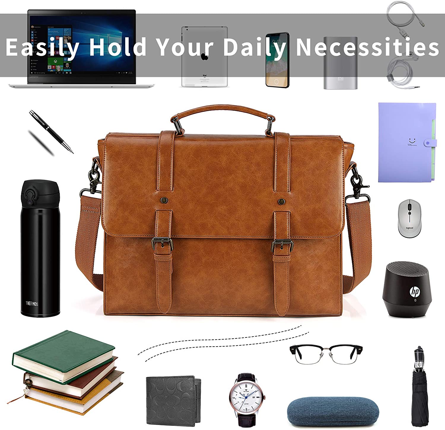 - 【Convenient Magnetic Snap & Comfortable Fit】Laptop messenger bag is double secured by magnetic snaps and zippers. Inner padded laptop sleeve fits most laptops up to 15.6" and cohesive seal ensures it to be steady.
