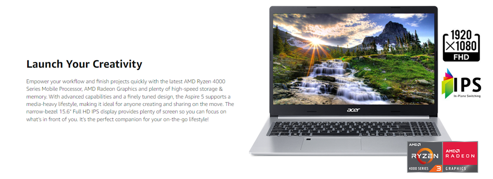 Acer Aspire 5 A515-44 Amazon Choice Ryzen 4000 3 4300U 15.6 Full HD SSD AMD