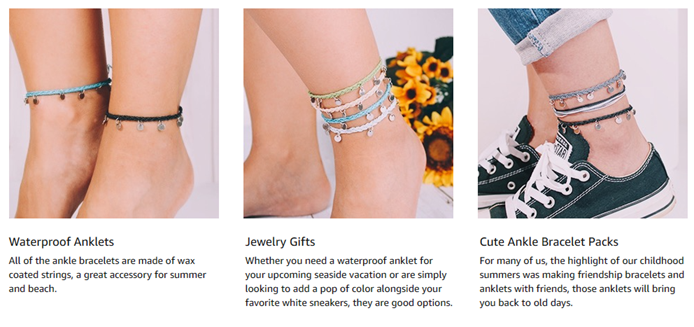 • Anklet Set: There are 3 separate anklets, so you can layer them any way you want.