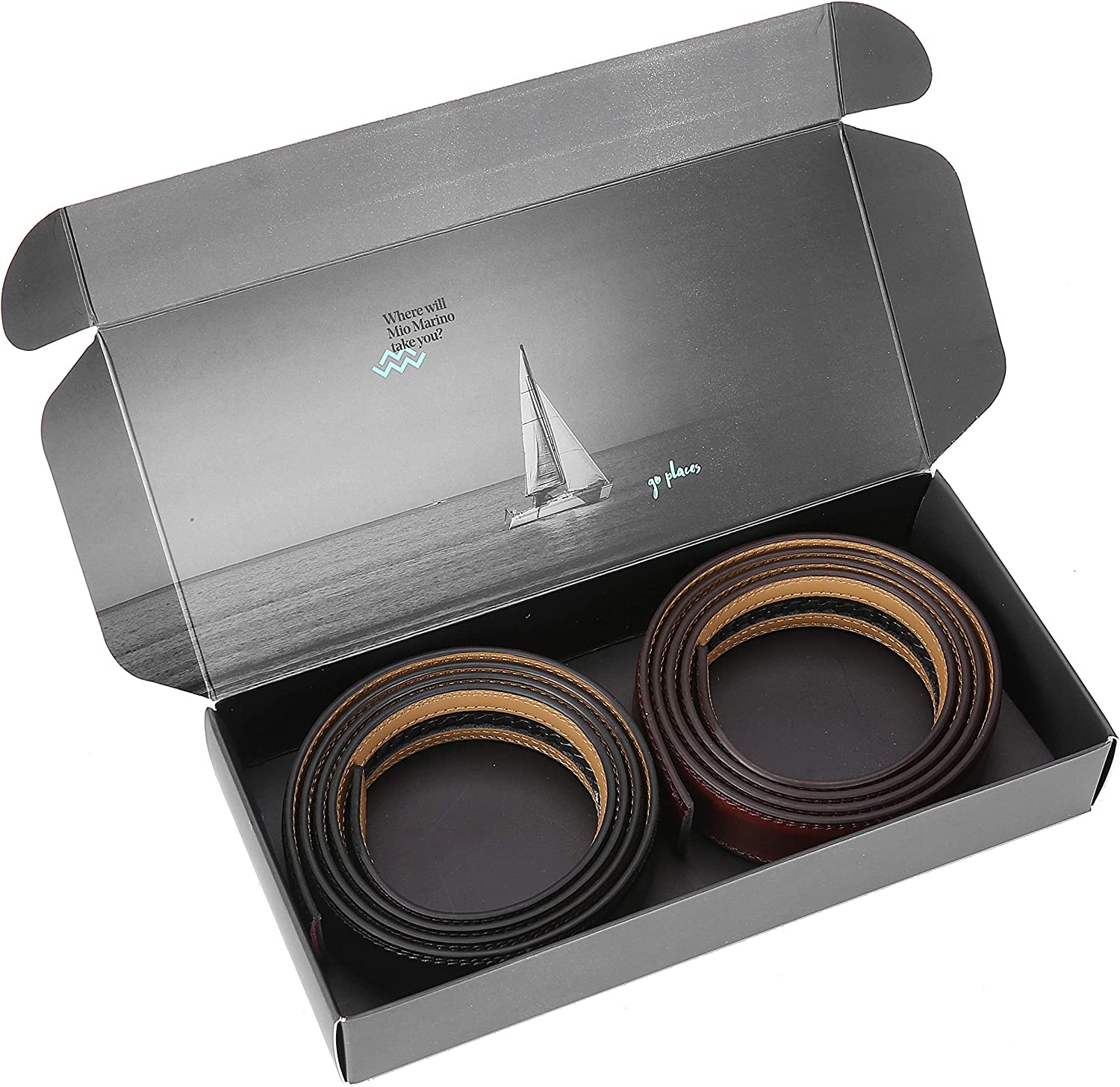 [2 Pack] Mio Marino Mens Genuine Leather Ratchet Belt Replacement Strap 1 1/8 Without Buckle