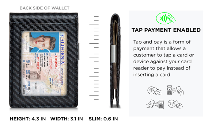 STYLISH & PRACTICAL – FUNCTIONALITY AT ITS BEST. Finally! A wallet that will meet your everyday needs and fits in your pocket without bulging. 2 convenient outside card slots made for your most used cards; Instantly have the cards you need to save time and energy. Photo ID slot located on the outside of the wallet; a smart solution to instantly access your ID. Innovative stainless-steel money clip securely holds up to 15 bills; quick payments and organization made easy!