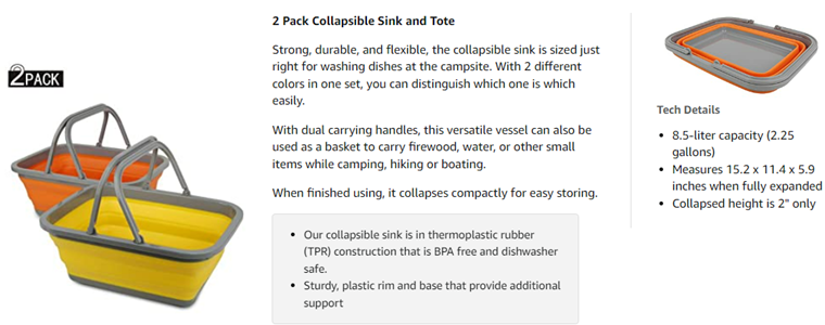 • BPA FREE and GREAT VALUE: Our collapsible sink is in thermoplastic rubber (TPR) construction that is BPA free and dishwasher safe. You only need to pay 1 but get TWO. Great value. With different color, you can distinguish which one is which easily. Imagine you are camping, you can use one to wash dishes, the other is to put clean dishes.