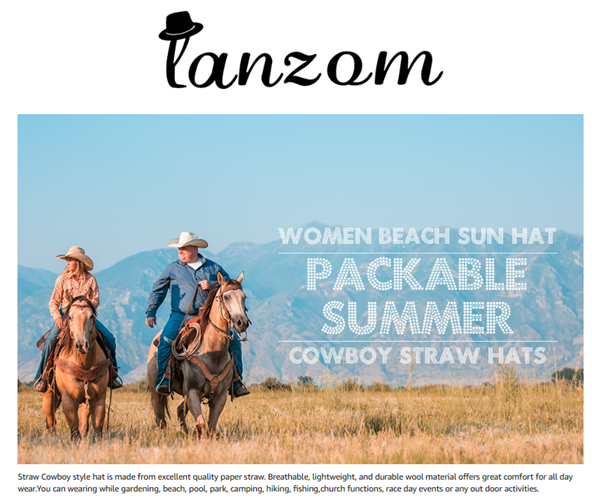 Lanzom Womens Straw Beach Sun Hat Packable Summer Cowboy Straw Hats with Wind Lanyard