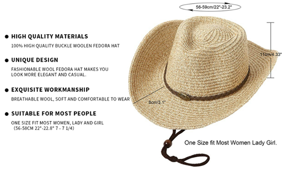 • Easy to use and maintain: This straw cowboy hat is easy to clean maintain and pack, making it perfect for regular use. It features a unique design that makes it easy to wear and adjust.