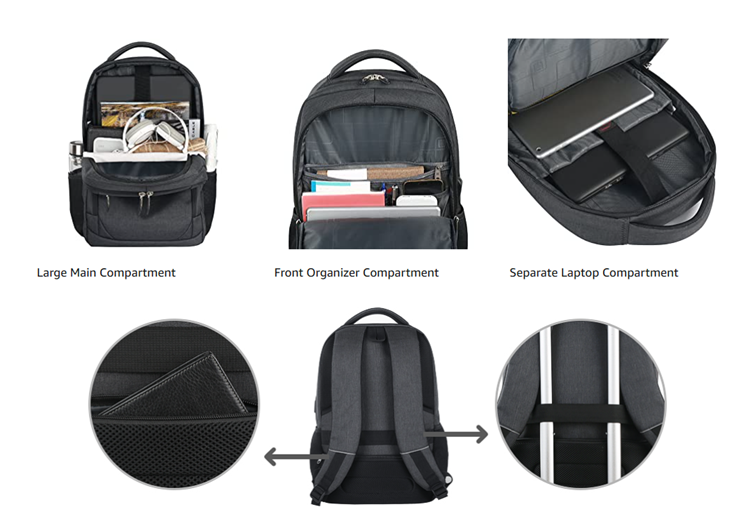 Separate Laptop Compartment: Fits 17 15.6 15 14 13 Inch Laptops and Macbook(Laptop over 17inch is not recommended)