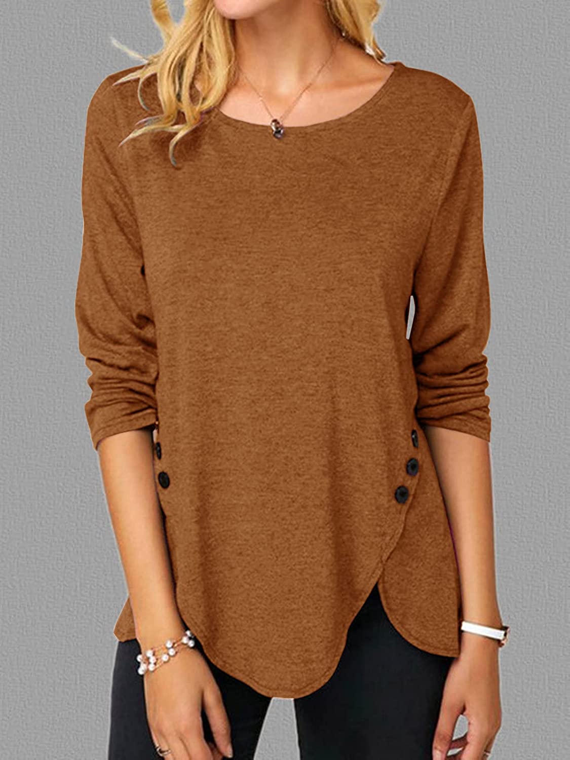 Unique Design:Long Sleeve Casual Tunic Shirt,This asymmetrical hem tunic is incredibly soft and comfortable! It classy and fun.The buttons on the side are non-functioning, but attractive.
