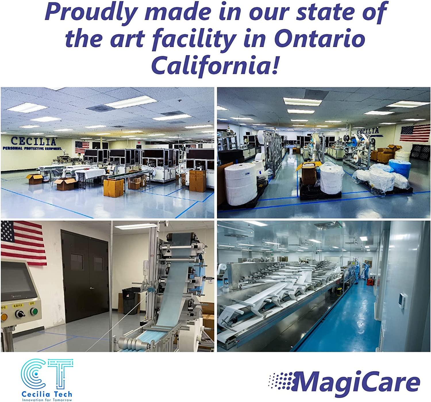 • ? MADE IN USA: Proudly manufactured in a state of the art facility in Ontario, California. MagiCare masks are manufactured under strict quality control standards in a state of the art cleanroom facility.