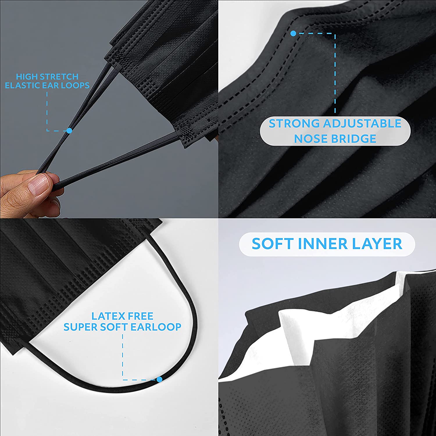 • ? BREATHABLE & COMFORTABLE: Made from Highest Quality Material that are Extra Soft & Breathable. Wear for long periods of time without feeling suffocated by a damp, itchy fabric. Our masks inner layer permits air and moisture to pass through, allowing for Maximum Breathability. MagiCare black disposable face masks are Most Breathable Face Mask you'll Find!
