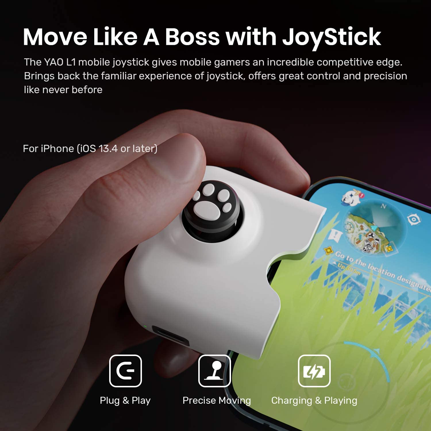 IFYOO YAO L1 Pro Mobile Game Controller Joystick for iPhone (iOS 13.4 or Later), Gaming Gamepad for PUBGG Mobile, Call of Duty Mobile(CODM), Wild Rift, Genshin Impact, with 2 pcs Finger Sleeve - White