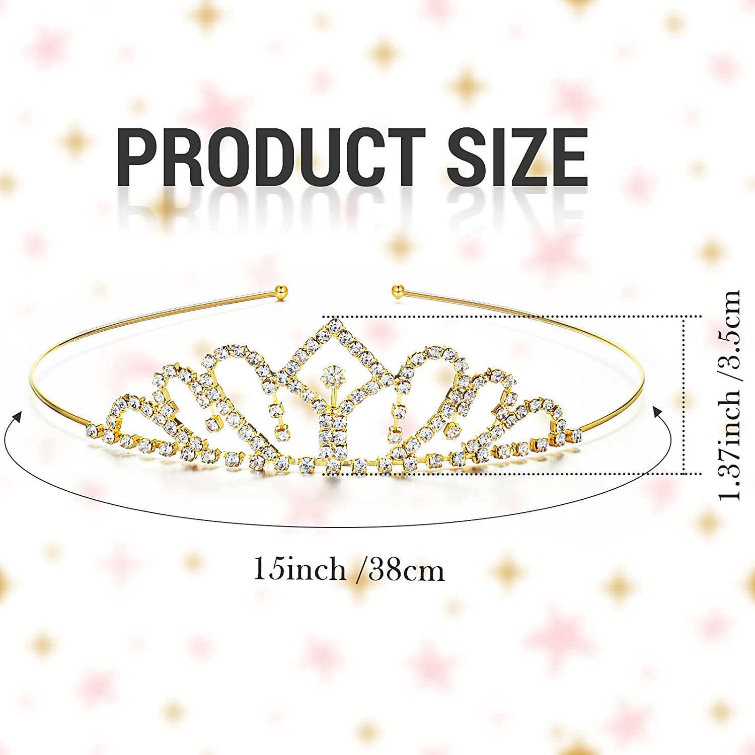 • Size detail: the girls crystal head crown is approx. 5.51 x 4.72 x 1.37 inches/ 14 x 12 x 3.5 cm (L x W x H), the circumference is approx. 38 cm/ 15 inches, suitable for girls who are around 5-12 years old, making them become cuter and more beautiful