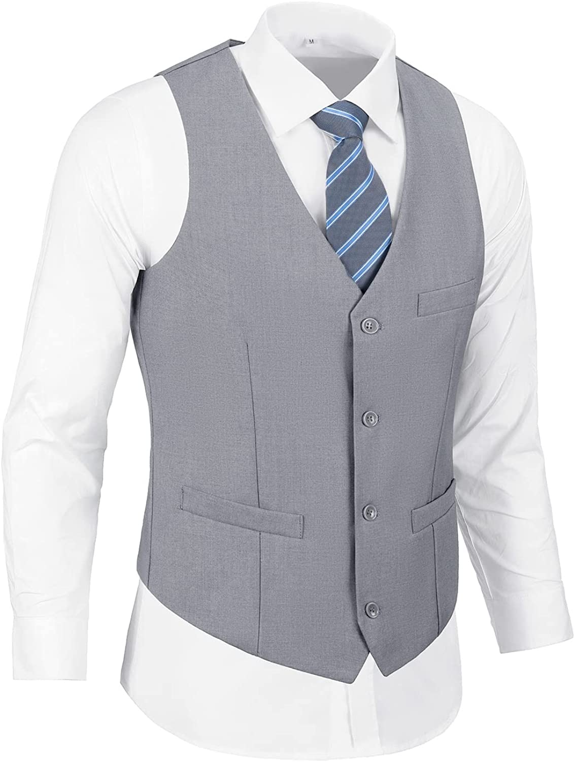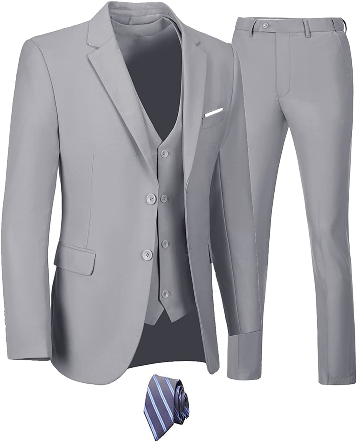 Furuyal Men's Suits 3 Piece Slim Fit Suit Set,Two Button Wedding Business Tuxedo Solid Blazer Jacket Vest Pants with Tie