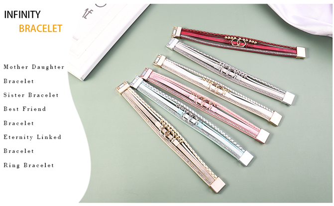 • Layered Bracelets: The rose gold infinity circles, rose gold beads and shinny rhinestone are telling “The love between us is forever”.