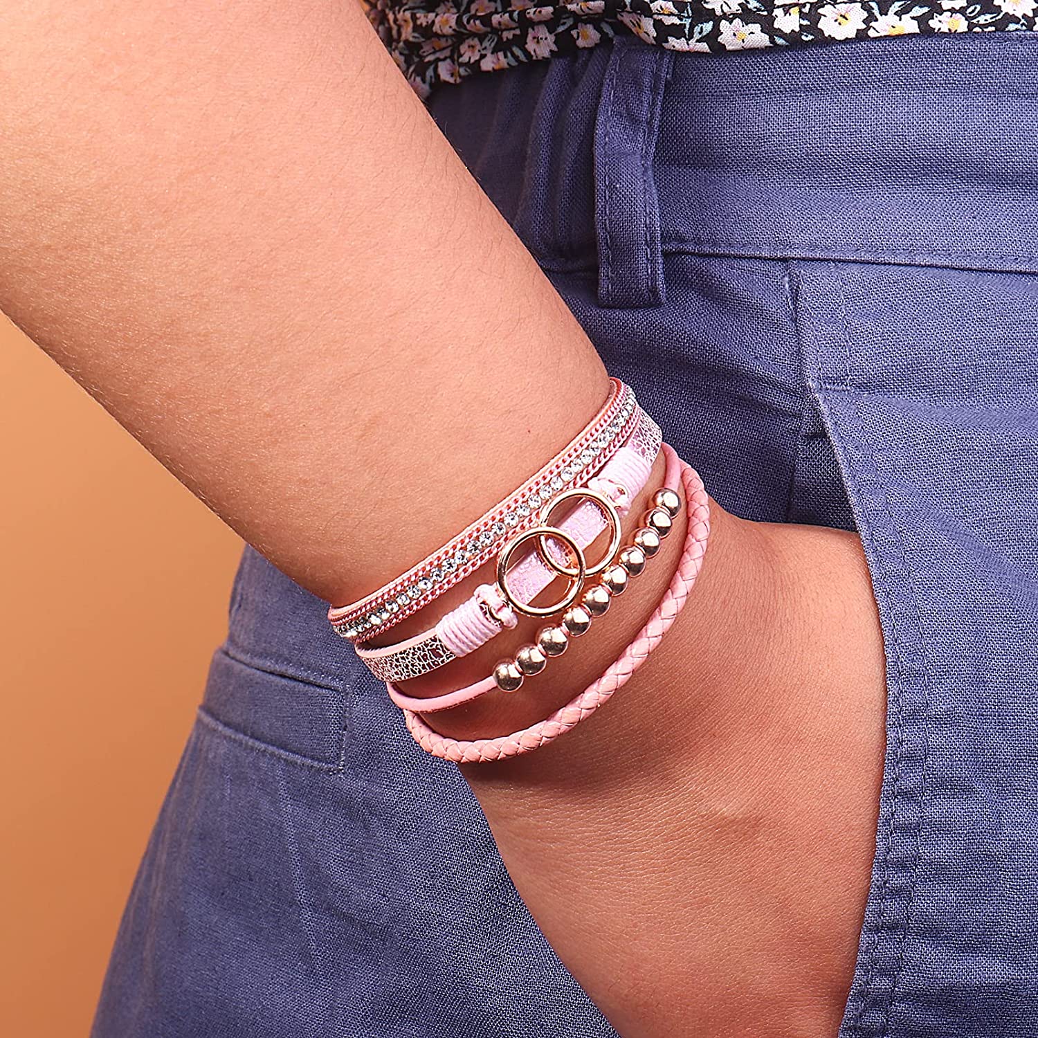 FANCY SHINY Boho Wrap Bracelets Leather Cuff Bangle Gold Beaded Bracelets for Women Stackable Infinity Bracelets Jewelry with Clasp