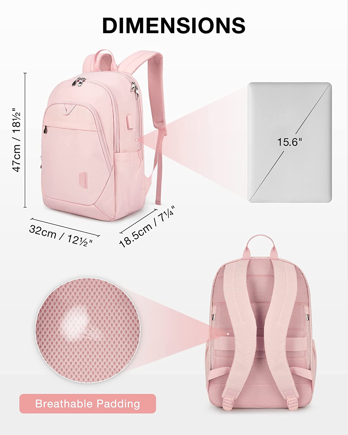 • Convenient Pocket: The front zippered pocket of the pink laptop backpack allows you to put your small items in an organized manner. With a hidden anti theft pocket on the back, protect your valuable items from thieves. Side pockets for water bottles or umbrellas make your items organized and easier to find