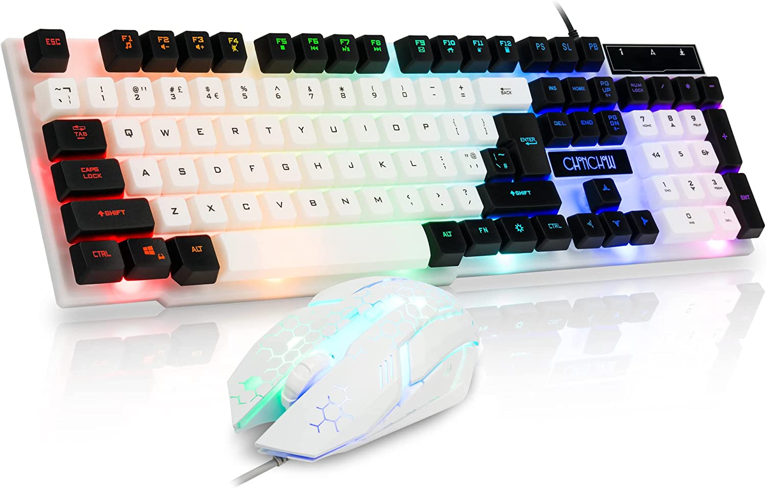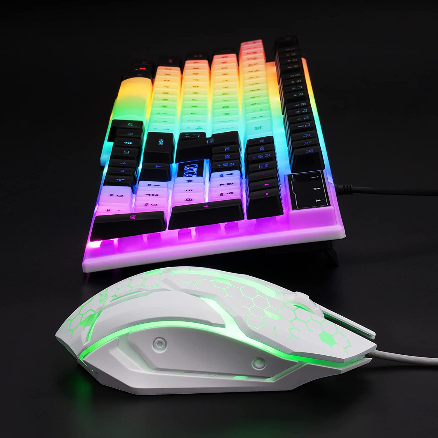 Gaming Wired Keyboard and Mouse Combo Backlit Rainbow RGB Full-Size Mechanical Feeling Key Board 3600 DPI Mice for Game Office Home