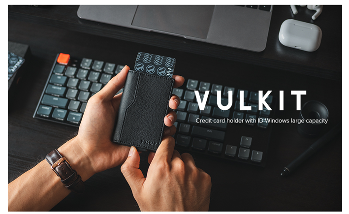 VULKIT Card Holder with ID Window Pop Up Cards Slim Leather Wallet RFID Protection Up to 12 Cards Card Case