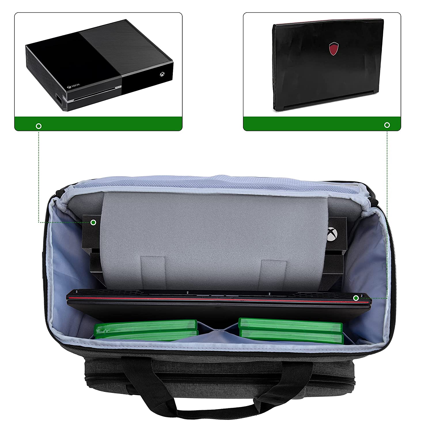 WELL ORGANIZED: Side mesh pouches are used for storing game discs or other game accessories. Separate back layer is attached for ipad or other personal items. (Bag only, NOT includes console and accessories.)protects the equipment away from bumping and damage.
