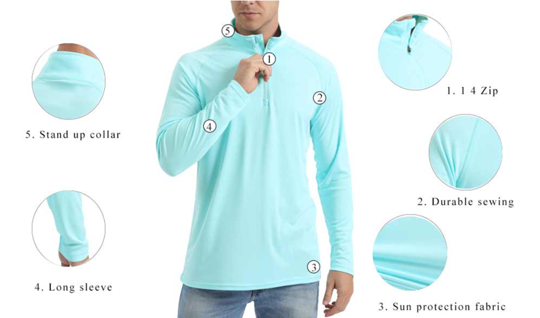 [Design] This men's fishing shirts have round collar and flat-lock seams to reduce chafing and increase comfort.