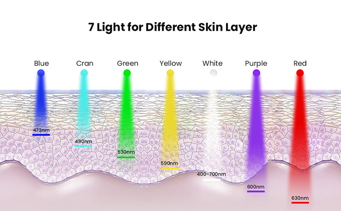 • 【LED Wavelength Skin Care】: The basic wavelengths are Blue 473nm, Green 530nm, and Red 630nm, which will yield 4 combo colorful light wavelengths. Different light wavelengths will solve various skin problems. Use of LED light therapy Frequently, your skin will be tender and smooth as a baby's skin.