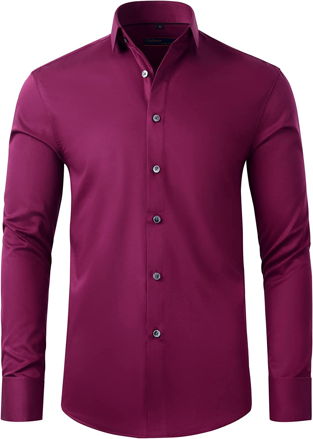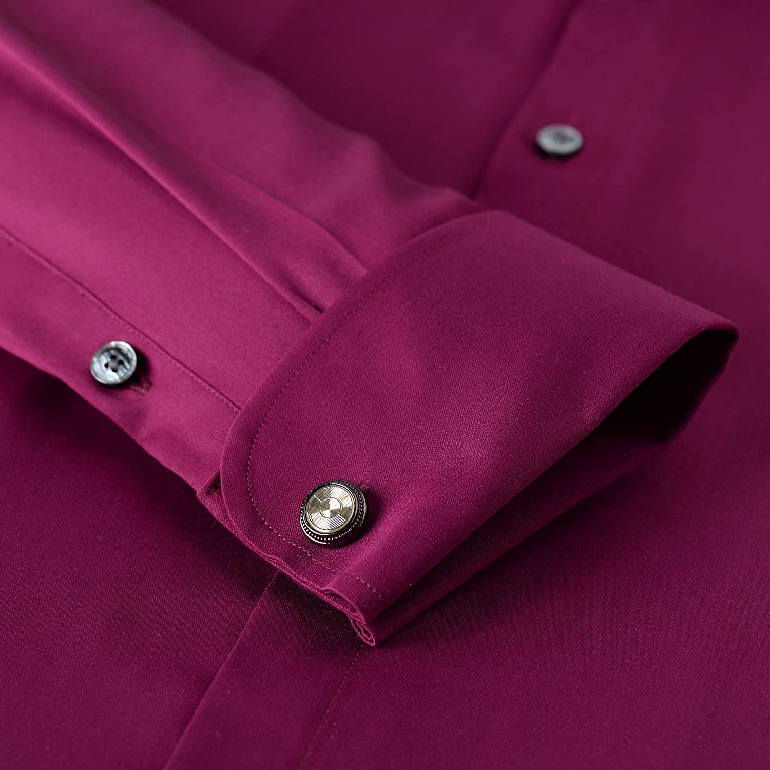 Gollnwe Men's Slim Fit French Cuff Stretch Bamboo Solid Dress Shirt