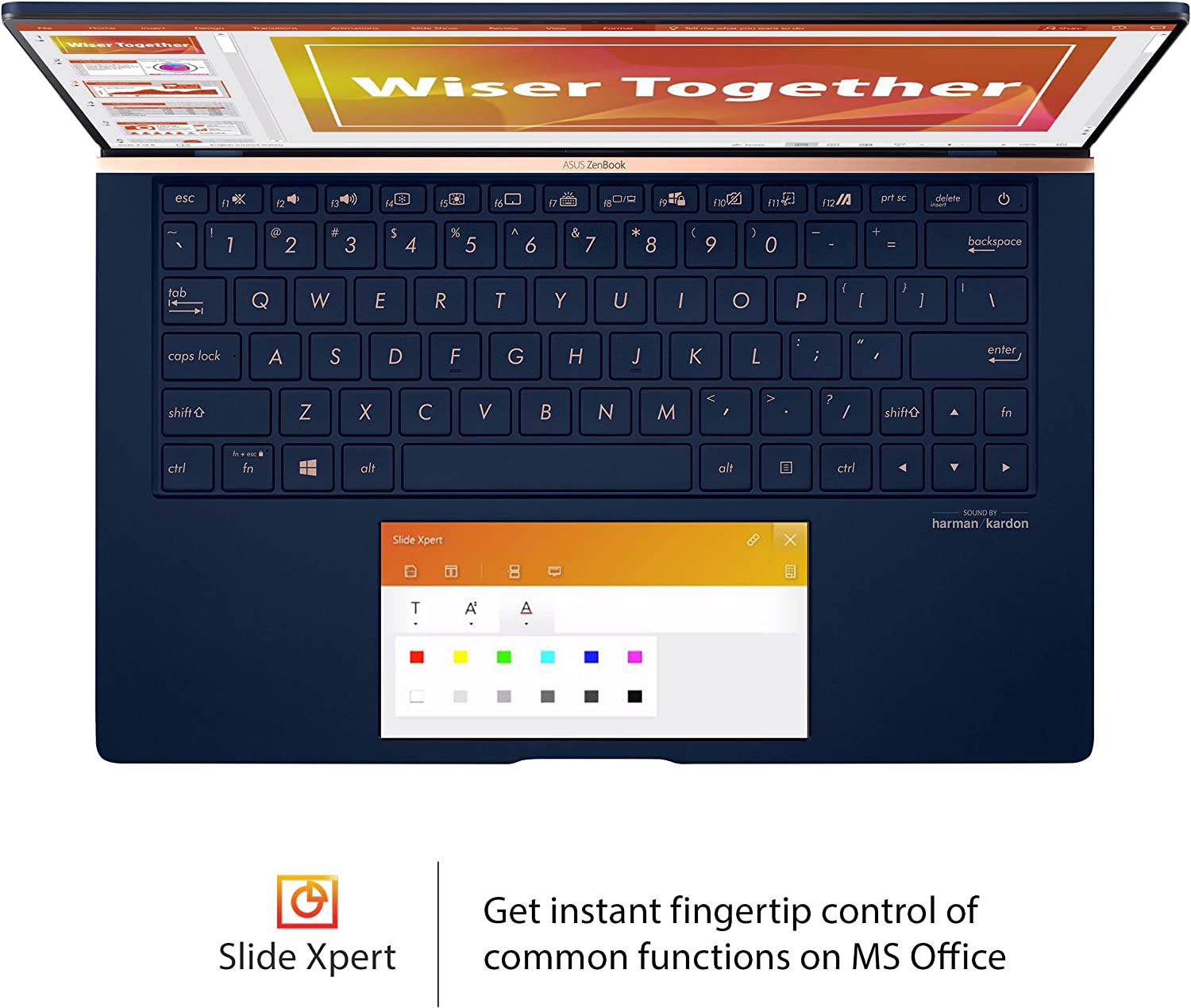 Zenbook 13 heralds a new era of Ultra portable Design, with an ultra compact, ultralight chassis. Featuring the four-sided NanoEdge display with Touch option, Zenbook 13 is 14% smaller than the previous generation Zenbook 13 (UX331) and weighs only 2.8 lbs. The new screen Pad 2.0 upgrades the traditional laptop experience, adding an interactive secondary touchscreen that enhances your productivity and gives you endless possibilities. Its intuitive smartphone-like interface lets you easily manage tasks and create your own seamless multitasking workflow. There's a series of handy Asus utility apps to boost productivity, including quick key — for one-tap automation of complex keyboard sequences — along with handwriting, number key, doc Xpert, slide Xpert and sheet Xpert. Screen Pad 2.0 intelligently fits many apps into the 5.65-Inch touchscreen, and you can effortlessly add apps to screen Pad for instant access. The newly-optimized screen Pad experience ensures that your favorite apps, such as ever note and spotty, will work perfectly on this secondary display right away, without the need for a screen pad-specific version. Asus also works closely with third party developers, including video-editing software developer Corel, to optimize Adaptive screen Pad tools for the ultimate productivity — and there's much more to come. The actual transfer speed of USB 3.0, 3.1 (Gen 1 and 2), and/or Type-C will vary depending on many factors, including the processing speed of the host device, file attributes and other factors related to system configuration and your operating environment.