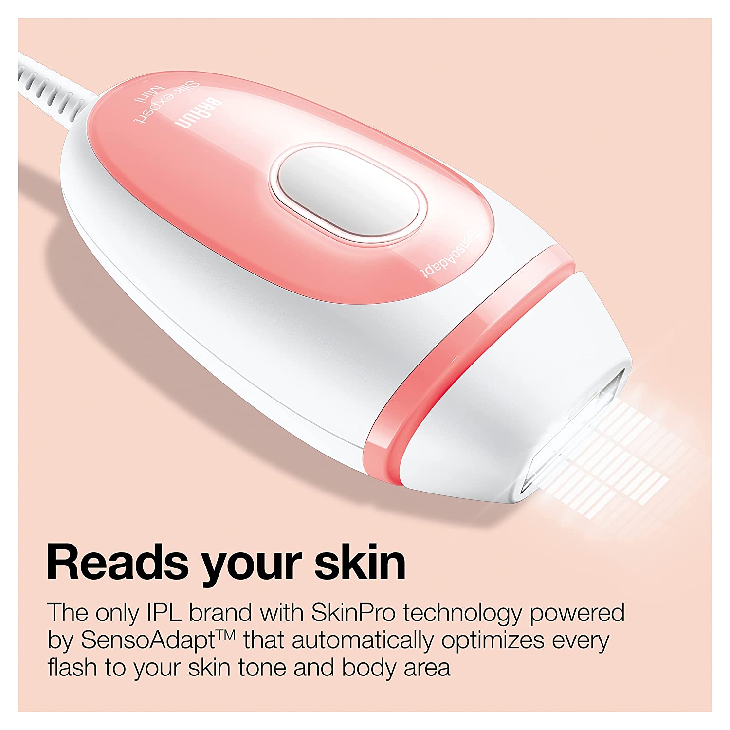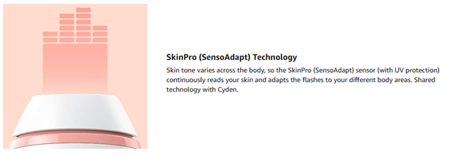 • Safe women’s hair removal machine: clinically tested. Skin sensor adapts energy intensity to skin tone.