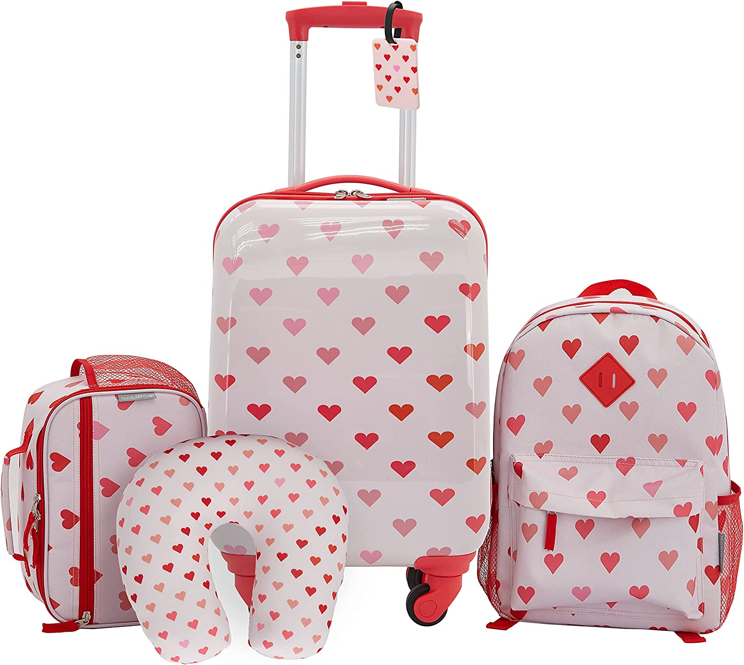 Travelers Club Kids' 5 Piece Luggage Travel Set with Telescoping Handles, Hearts
