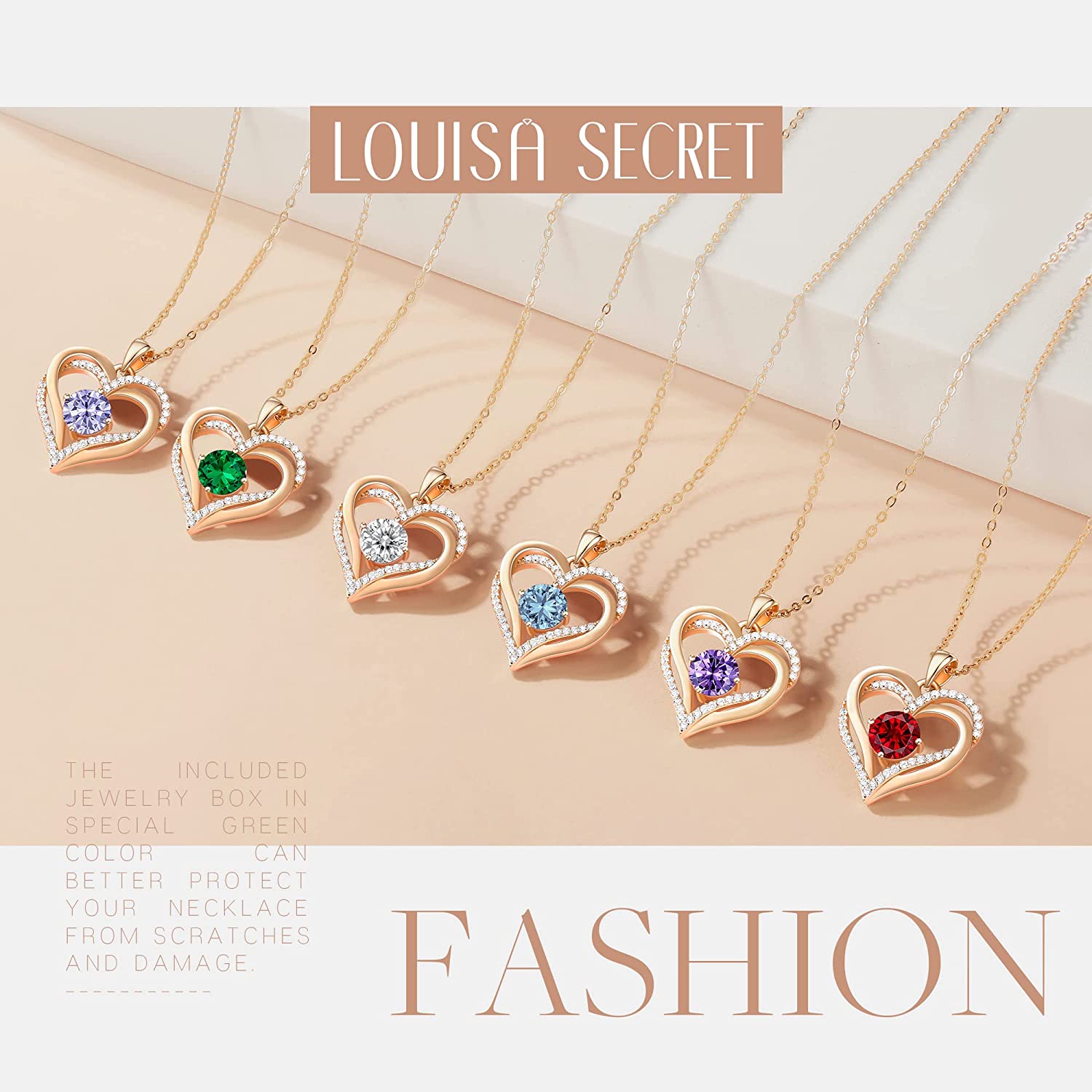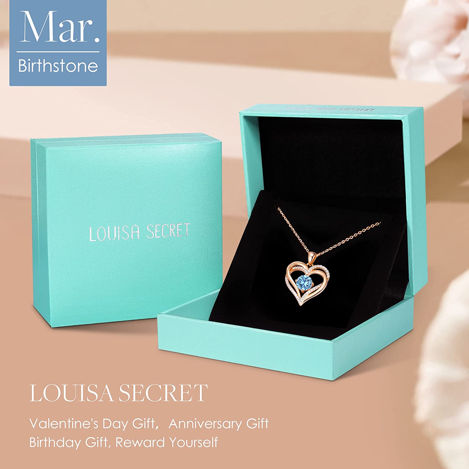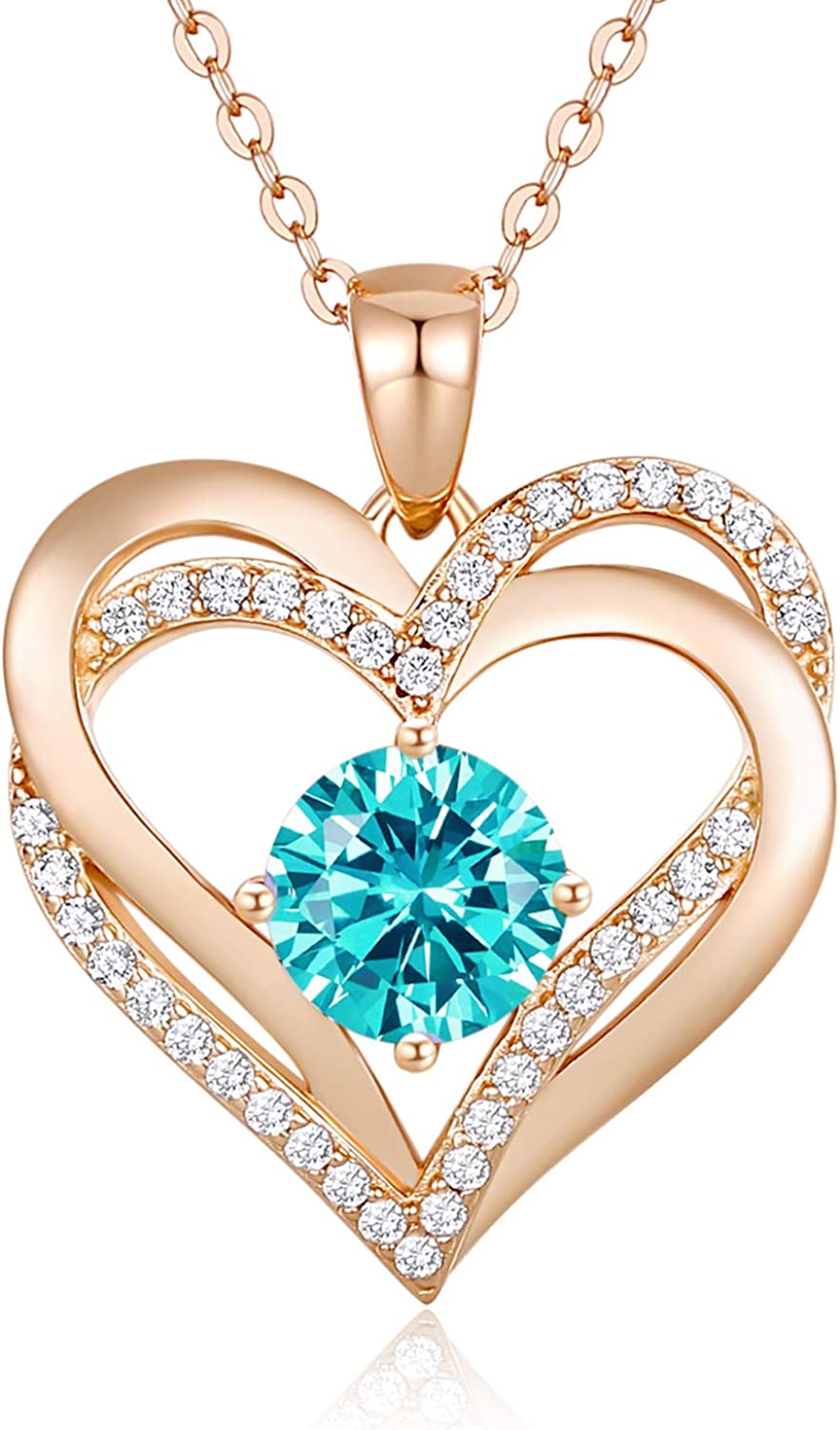 LOUISA SECRET Love Heart Birthstone Necklaces for Women 925 Sterling Silver Rose Gold Pendant Forever Diamond Jewelry Valentine's Day Christmas Anniversary Birthday Gifts for Wife Girlfriend Mothe