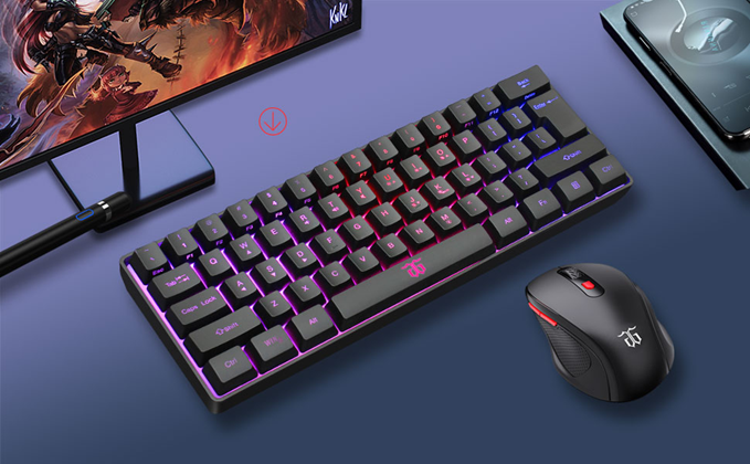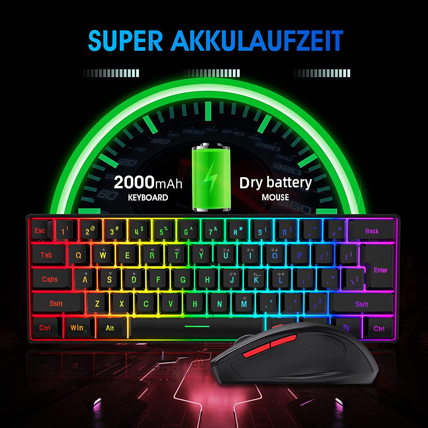 • 【Small Gaming keyboard and Mouse Combo】The scientific choice is a wireless compact 60% keyboard and a cute pocket-sized mouse, which strives to create a perfect combination of gaming and office. Slim and lightweight design makes it not occupy much space and provide convenience for travel.