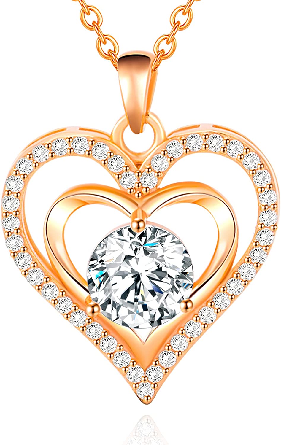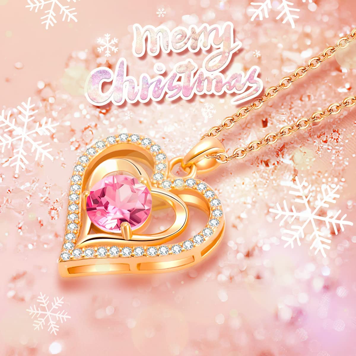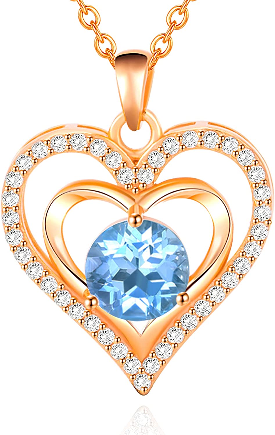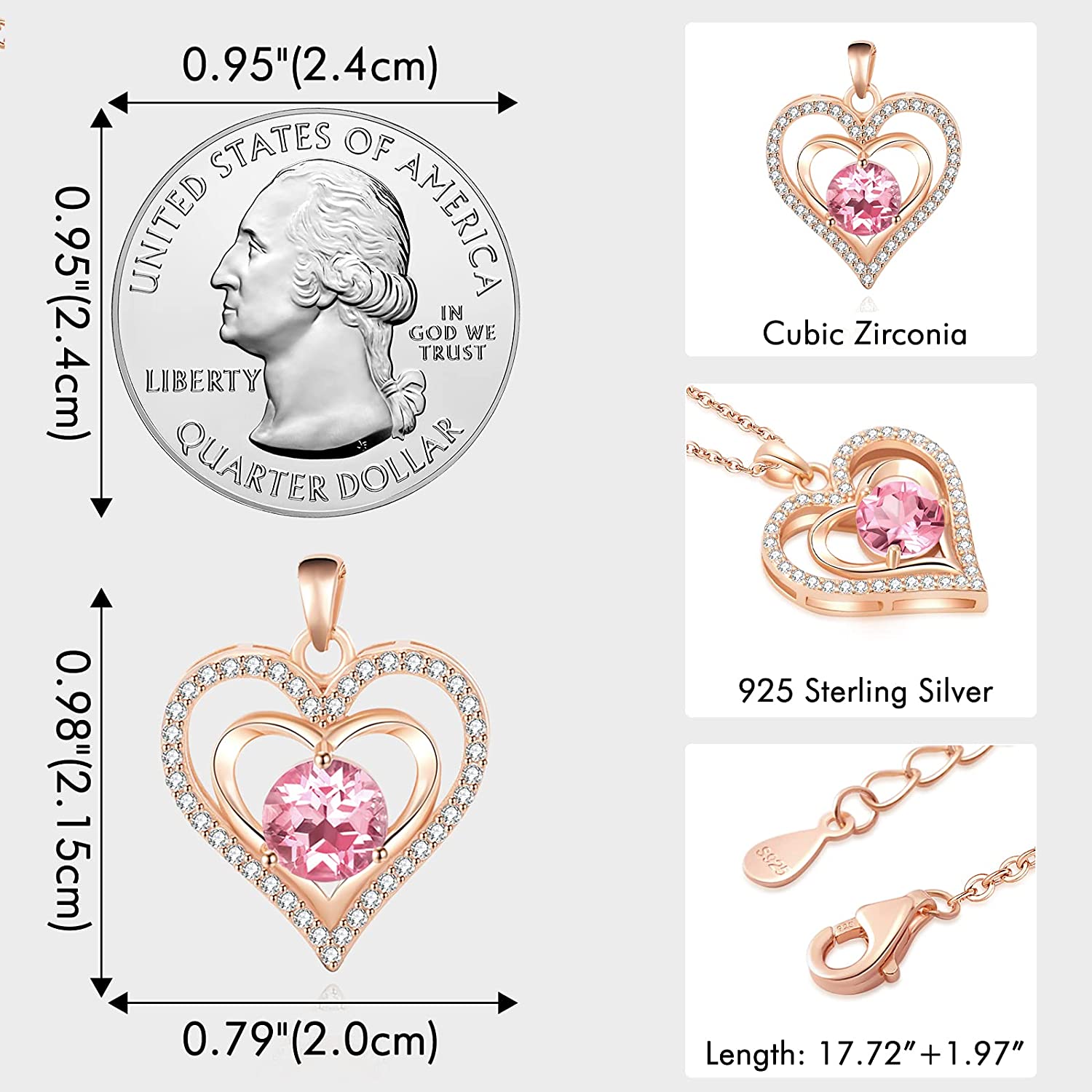 capirosa Forever Love Heart Birthstone Necklaces for Women 925 Sterling Silver Rose Gold Pendant Diamond Jewelry Valentine's Day Christmas Anniversary Birthday Gifts for Wife Girlfriend Mother