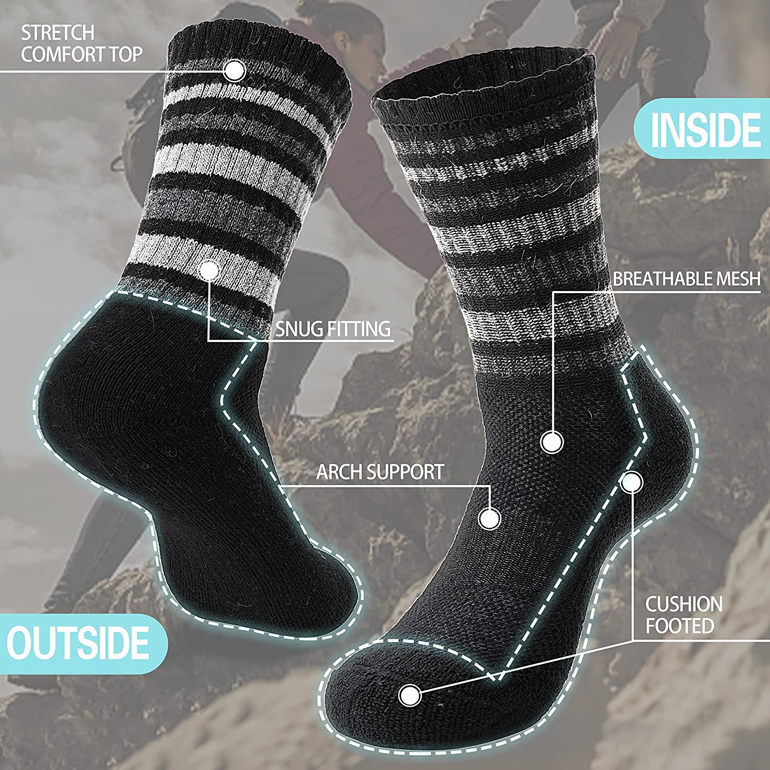 ELASTICITY - These warm hiking socks for womens have high elasticity and arch stripe,which can enhance the blood moving ,relieve symptoms varicose and keep socks stable.They can greatly improve your comfort in hiking , running , walking , climbing , trekking or everyday wear.