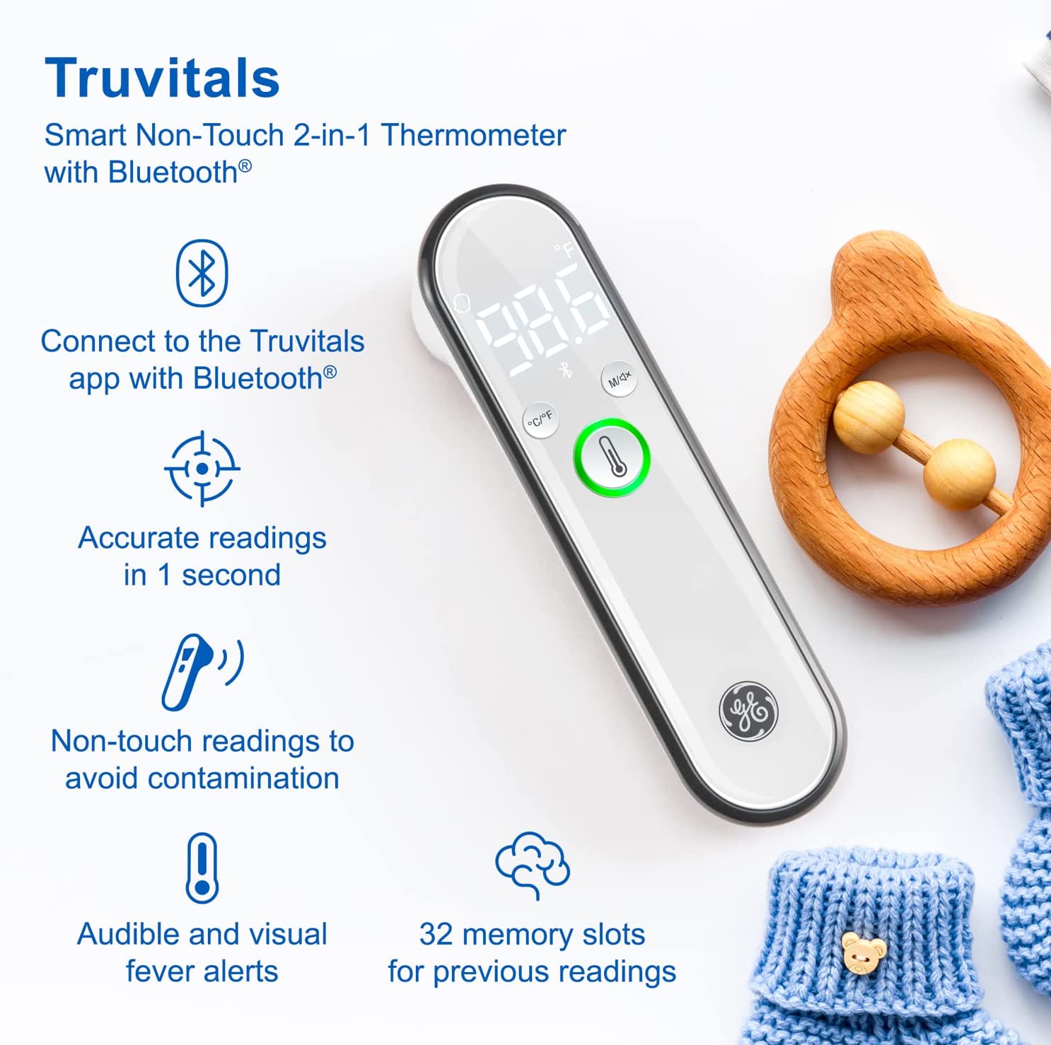 GE No-Touch Digital Forehead Thermometer for Adults, Kids and Babies, Non-Contact 2-in-1 Infrared Temperature Scanner, Instant Accurate Reading, LCD Screen, 1-Button Operation & Fever Alert (TM3000)