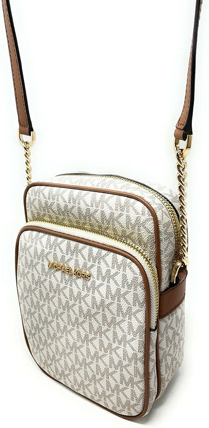 Michael Kors Jet Set Travel Signature PVC Medium Logo Chain Crossbody Flight Bag