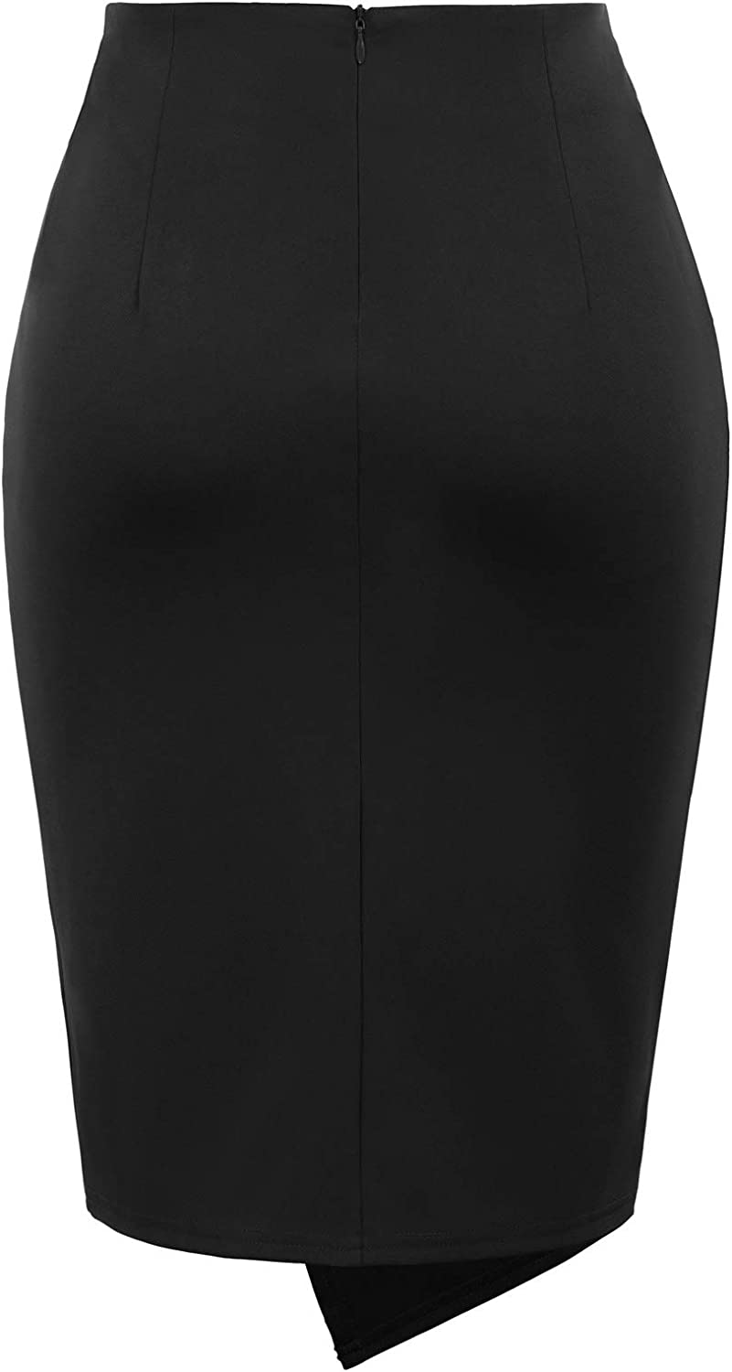Kate Kasin Wear to Work Pencil Skirts for Women Elastic High Waist Wrap Front