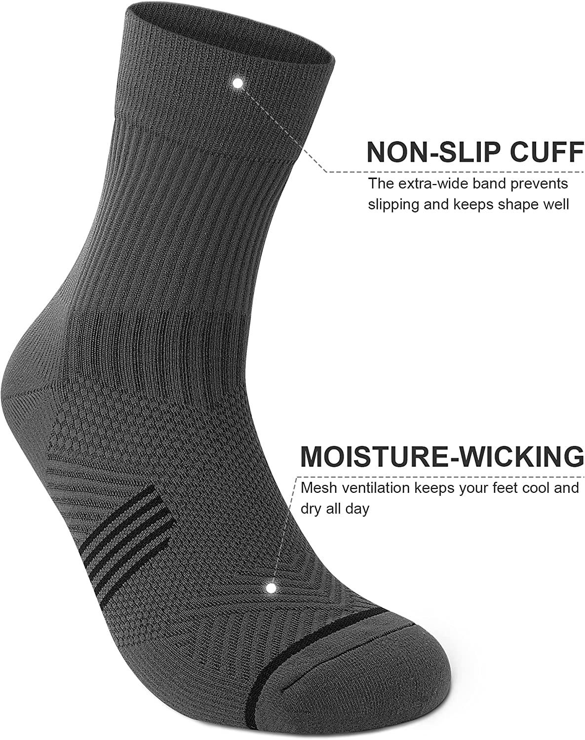 • ARCH SUPPORT & BREATHABLE: Targeted arch compression keeps your arch stable and secure, preventing sock movement and reducing injury during exercise. Our compression socks for men increase air permeability through mesh knitting technology, helping your feet keep cool and breathable all day long.
