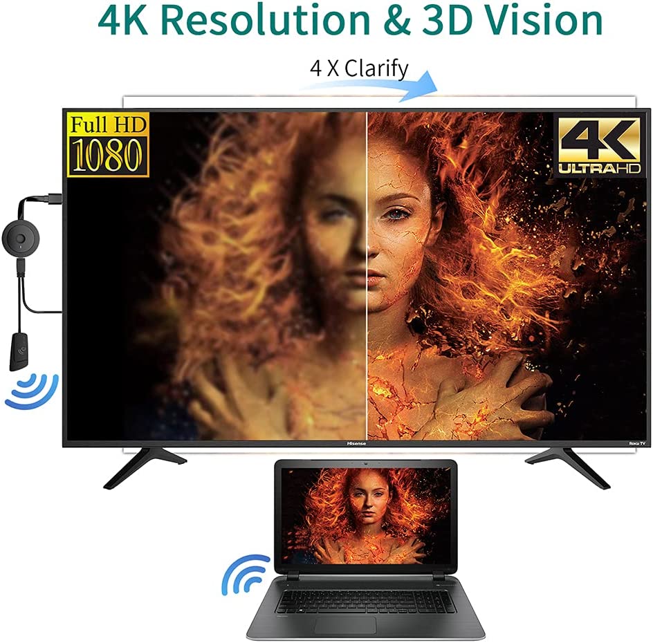 4K Wireless HDMI Display Dongle Adapter 1080P, WiFi Streaming Movies, Shows, and Live TV Receiver from iPhone, iPad, Android, Tablet, Window to HDTV/Monitor/Projector, Miracast, Airplay, DLNA, Chrome